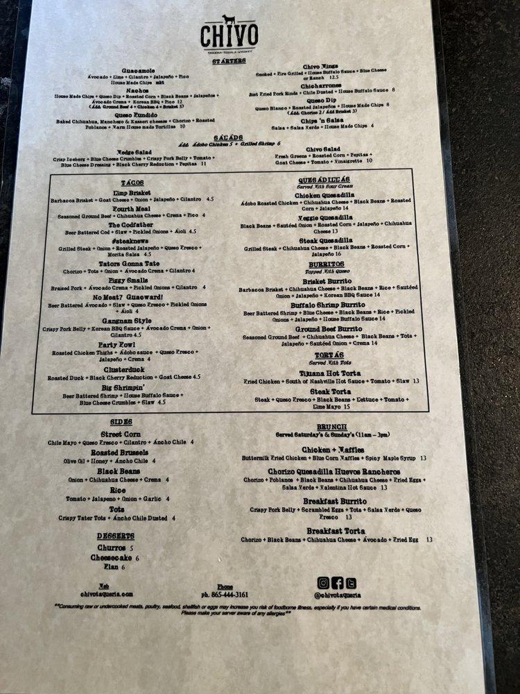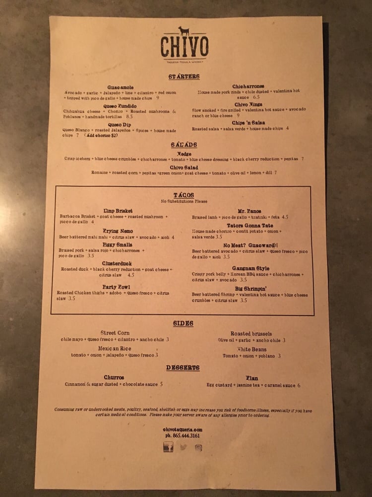 Chivo Taqueria Menu